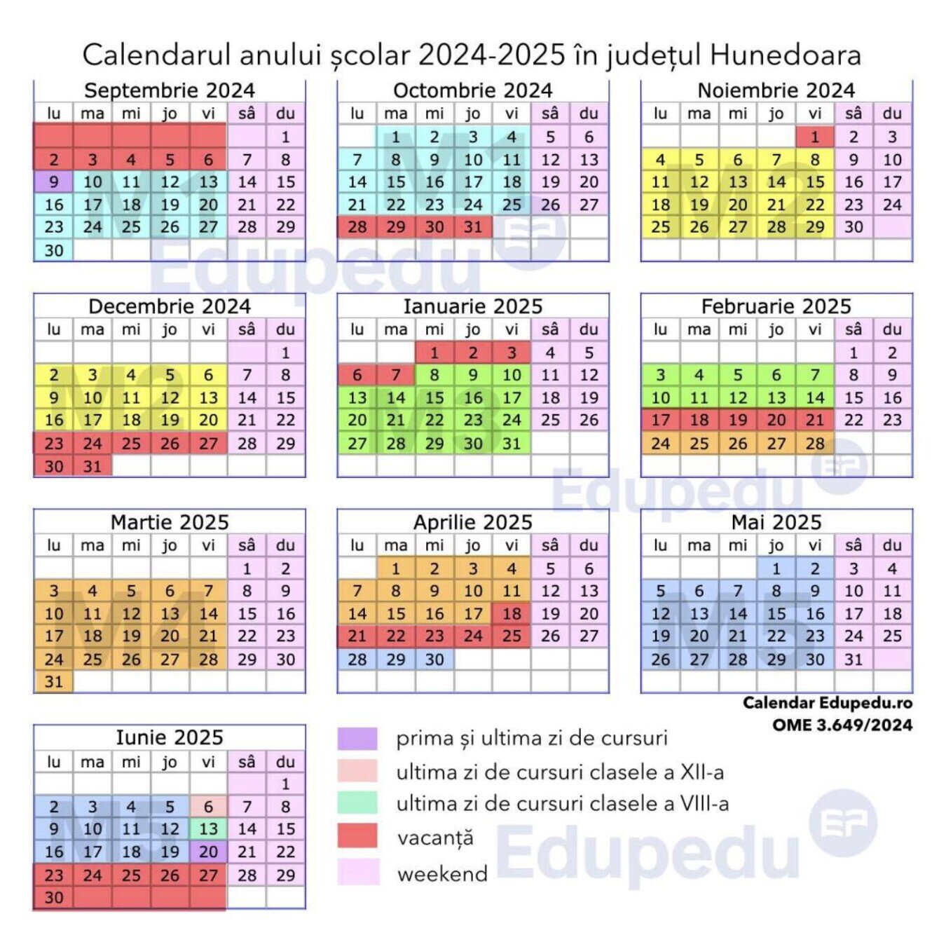 a) pentru clasele a XII-a zi, a XIII-a seral și frecvență redusă, anul școlar are o durată de 34 de săptămâni de cursuri și se încheie la data de 6 iunie 2025;