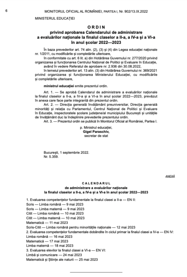 Evaluarea la clasele a II-a, a IV-a și a VI-a 2023